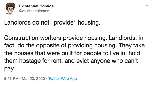 Pandemics bring to the fore the fundamental problems of a society. In the UK, one of the fundamental problems is that of property ownership and the housing crisis, which underpins many of the crises people are facing in the COVID-19 pandemic. Rough sleepers cannot self-isolate; people losing their jobs are not able to pay their rent; and university students being kicked out are forced back to sometimes unstable homes, potentially carrying the virus with them. The crises flaring up with the COVID-19 pandemic do not stem from the pandemic itself, but rather from the capitalist society we live in, where something so basic as a roof over one’s head is not guaranteed. For many, this already presents an ever-deepening crisis, so any form of shock can turn it into a disaster.
